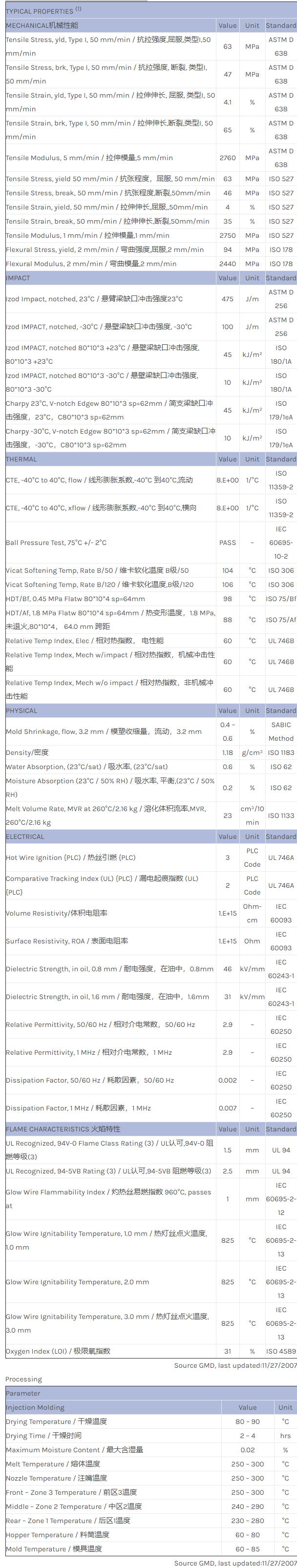 Cycoloy CY6110 resin是一种聚碳酸酯+丙烯腈丁二烯苯乙烯(PC+ABS)产品,可以通过注射成型进行加工。
