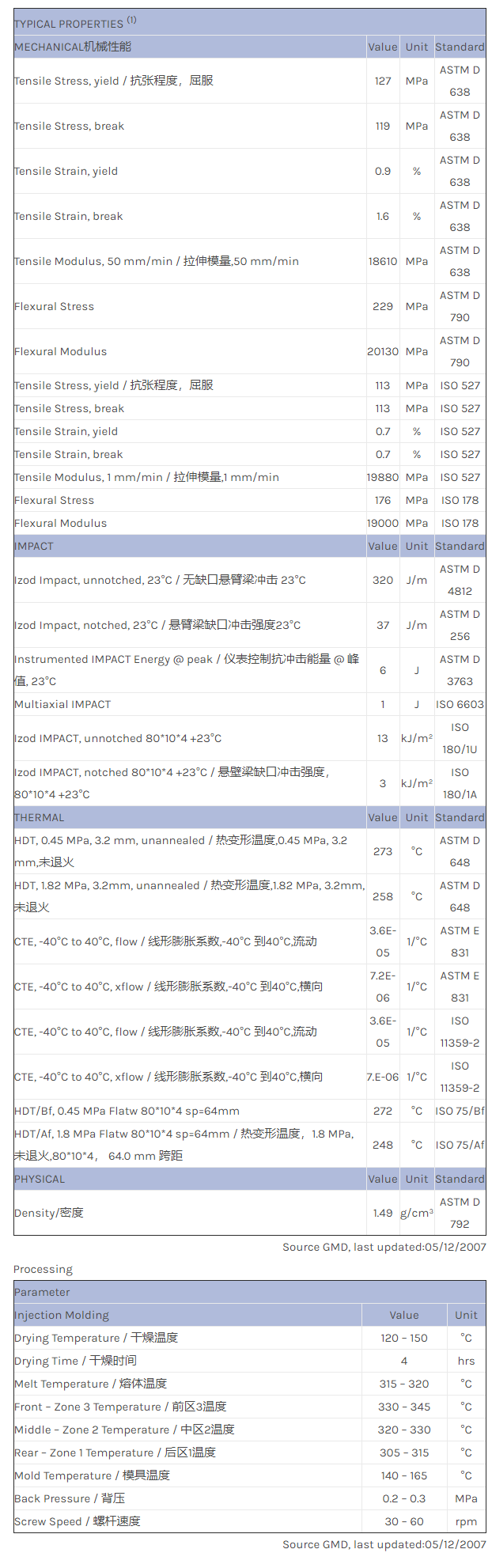 应用范围:产品描述LNP LUBRICOMP OCL-4536物性表LNP* Lubricomp* OCL-4536 is a compound based on PPS – Branched resin containing PTFE, Carbon Fiber, Silicone. Added features of this material include: Internally Lubricate
