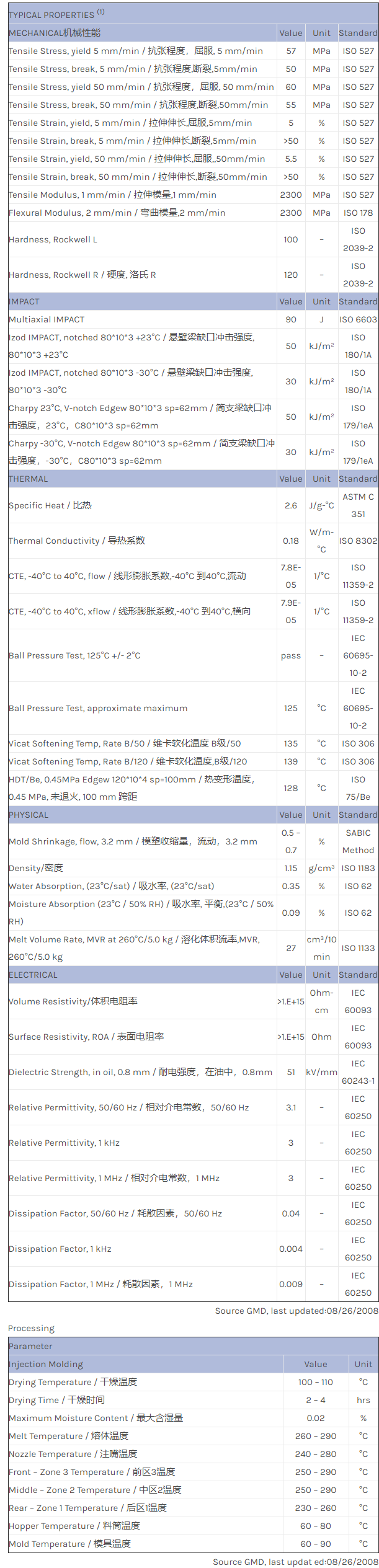 应用范围:产品描述CYCOLOY PC/ABS EXCY0236物性表