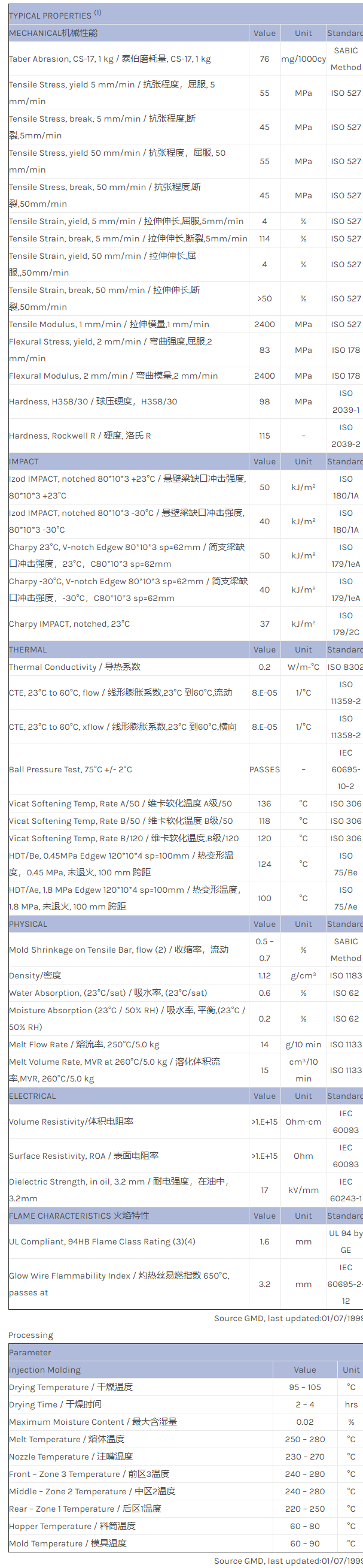 应用范围:产品描述CYCOLOY PC/ABS MC2162物性表Cycoloy MC2162 is a PC+ABS blend which has been specifically developed to satisfy the demanding application requirements, where an optimum combination is needed of superior