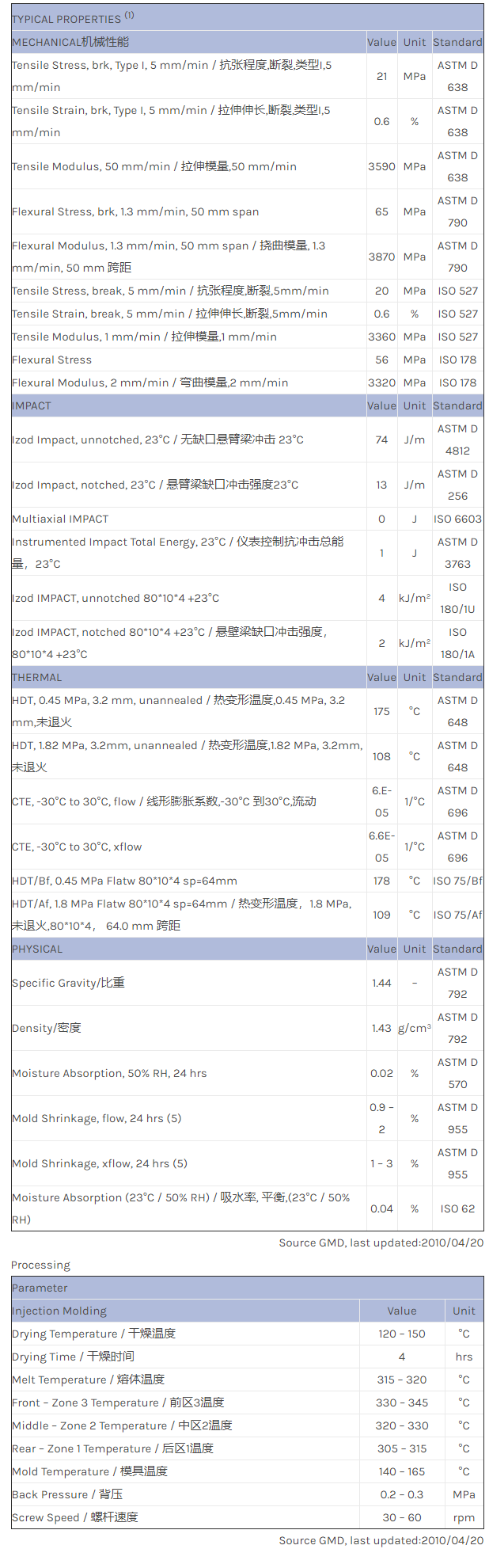 应用范围:产品描述LNP LUBRICOMP OL003A物性表LNP LUBRICOMP OL003A是一种支化聚苯硫醚产品,可以通过注射成型进行加工。特性包括:耐磨润滑支化聚合物结构相关色号:OL003A-NC