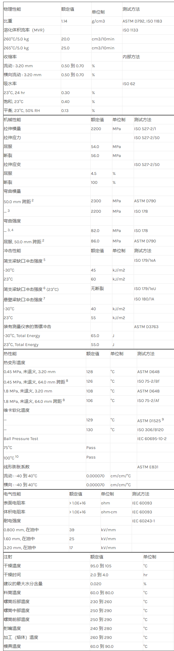应用范围:产品描述Cycoloy PC/ABS XCY620S物性表