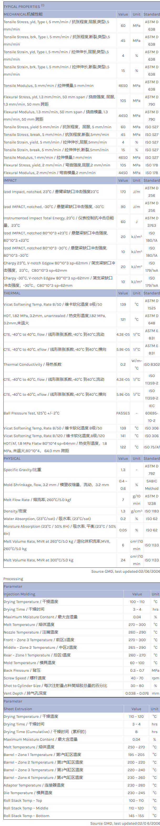 应用范围:产品描述CYCOLOY PC/ABS CE1810物性表PC/ABS with high stiffness and low CTE.