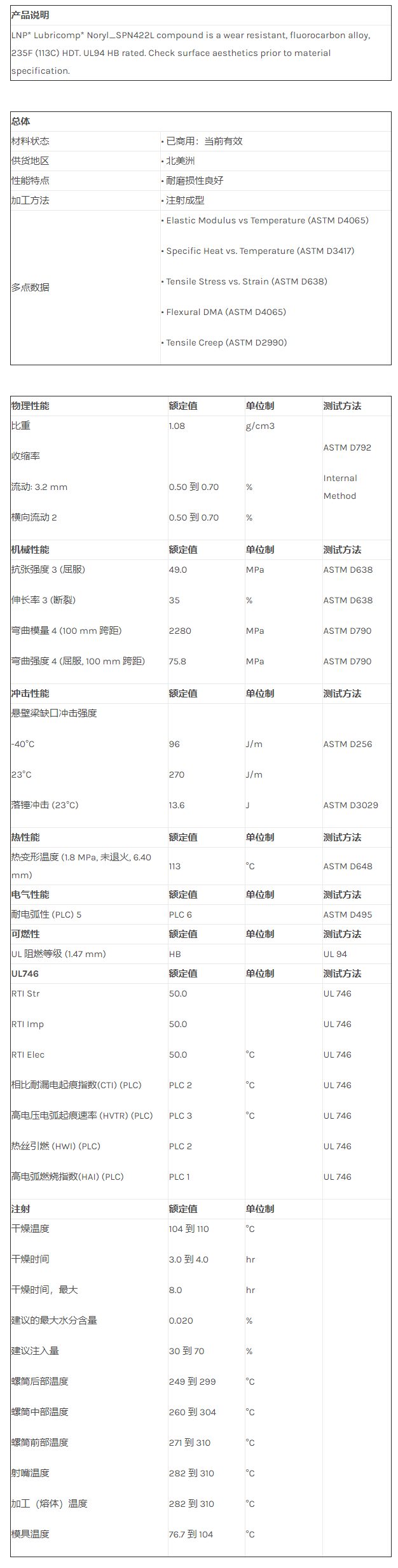 应用范围:产品描述LNP LUBRICOMP SPN422L物性表