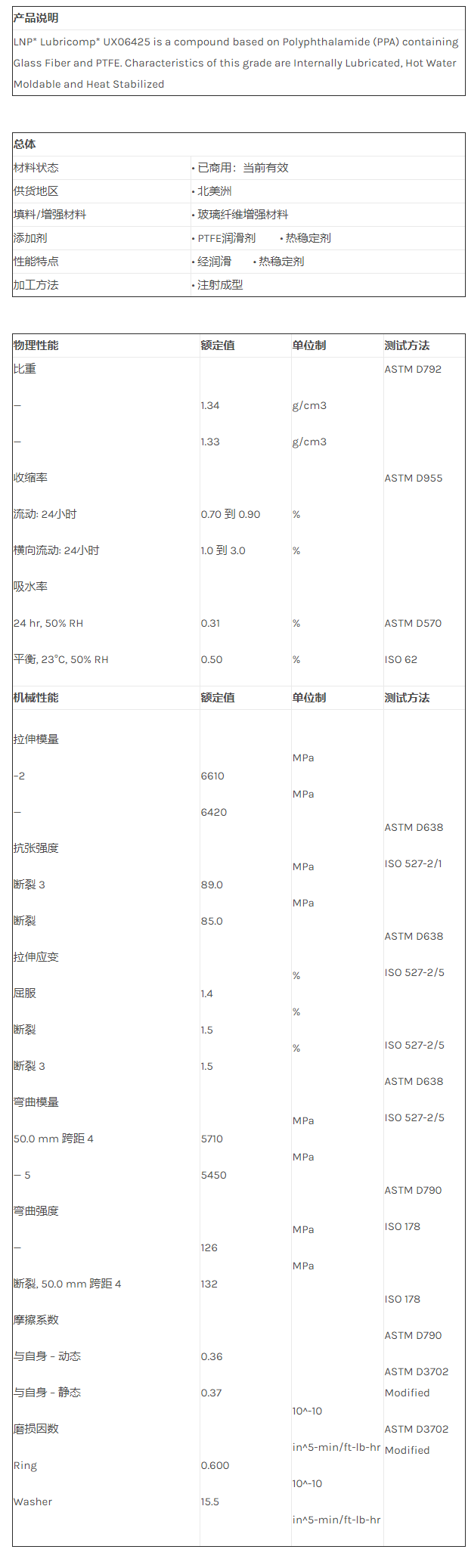 应用范围:产品描述LNP LUBRICOMP UX06425物性表
