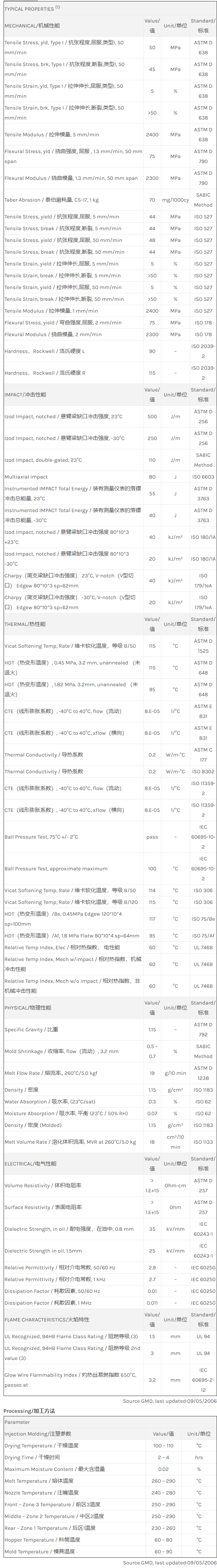 Cycoloy PC/ABS CX5430物性表