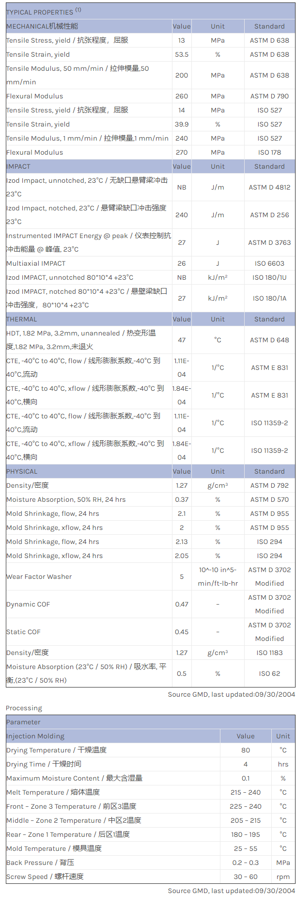 应用范围:产品描述LNP LUBRICOMP YP003物性表LNP LUBRICOMP YP003是一种热塑性聚酯弹性体(TPEE)产品,可以通过注射成型进行加工。特性包括:耐磨润滑相关色号:YP003-WHNAT