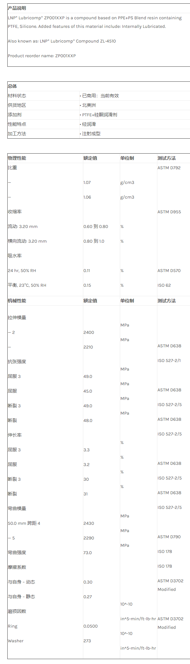 应用范围:产品描述LNP LUBRICOMP ZP001XXP物性表