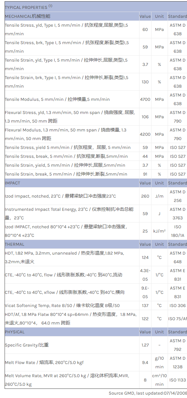 应用范围:产品描述CYCOLOY PC/ABS EXCY0259物性表PC+ABS with High Modulus, Low CTE.