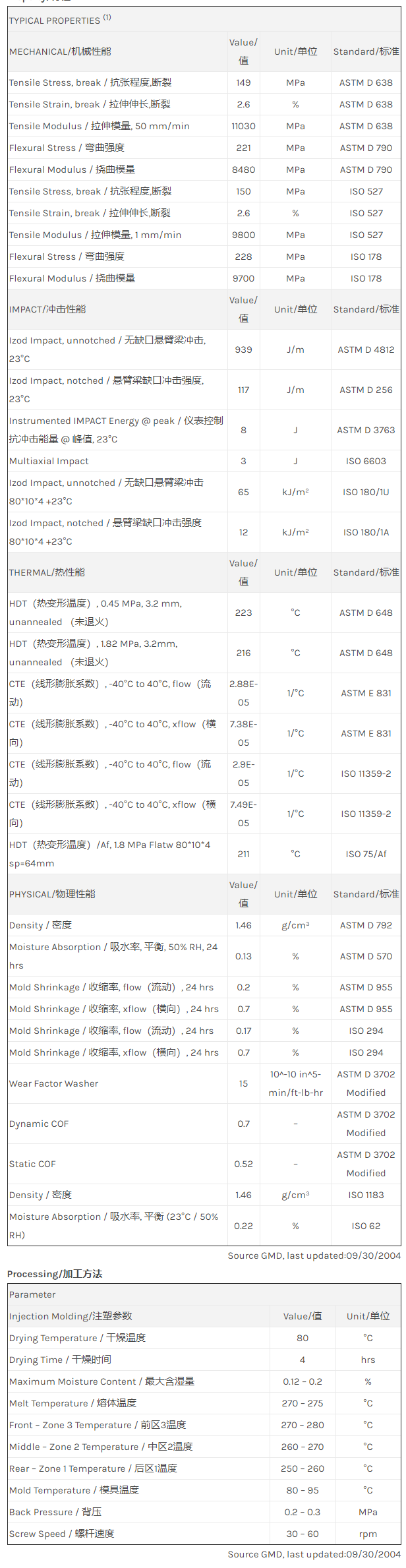 应用范围: 产品描述 LNP Lubricomp QFL36物性表 “LNP LUBRICOMP QFL36是一种聚酰胺610(尼龙6/10)产品,含有的填充物为30%玻璃纤维增强材料,可以通过注射成型进行加工。 特性包括: 耐磨 润滑” LNP LUBRICOMP* QFL36 is a compound based on Nylon 6/10 resin containing Glass