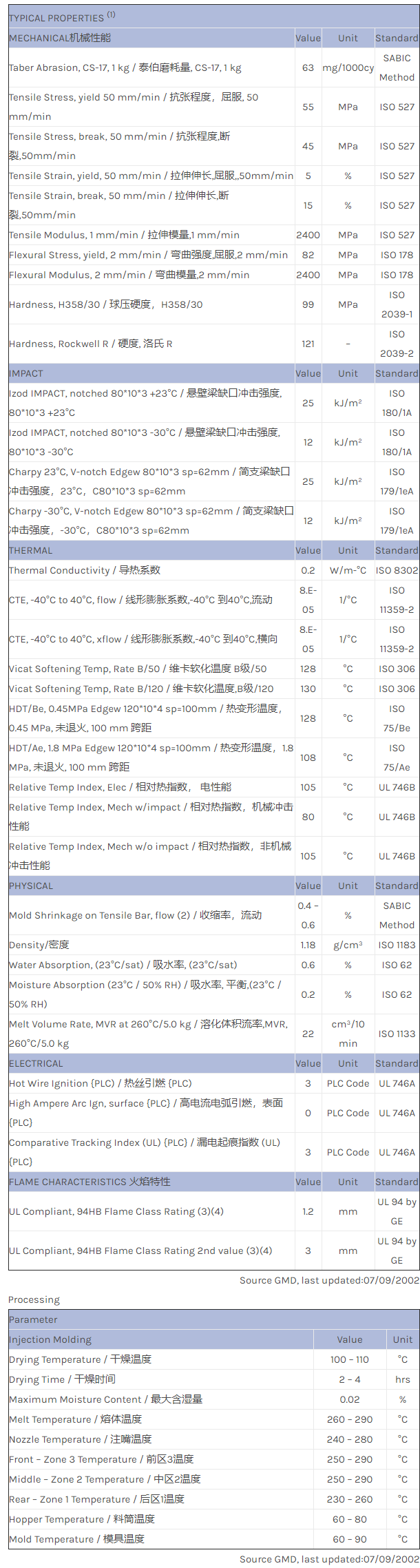 CYCOLOY PC/ABS FXC810FE物性表