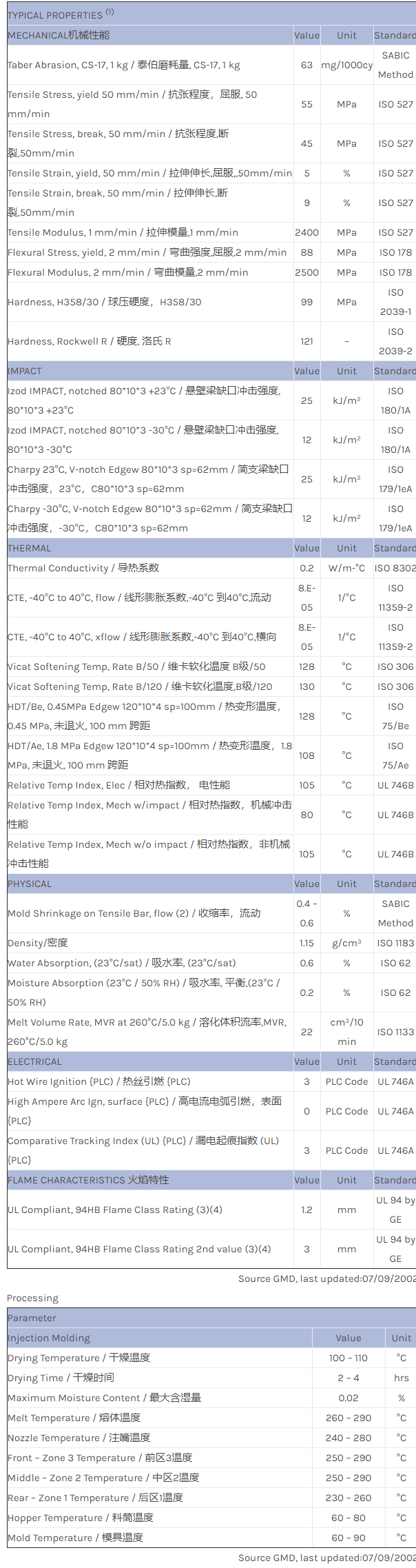 应用范围:产品描述CYCOLOY PC/ABS FXC810ST物性表CYCOLOY FXC810ST is a multi-purpose PC+ABS injection moulding grade, suitable for those applications that require Stone colour effects. The colour package may effect perf