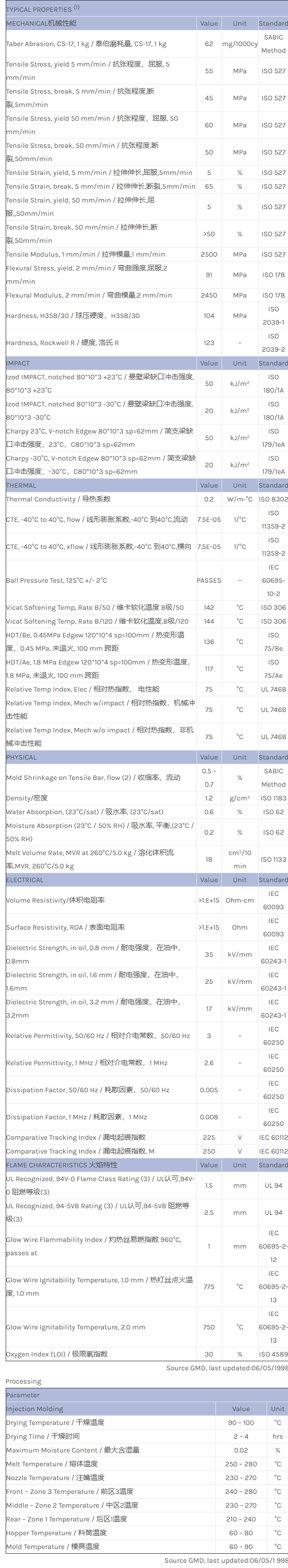 应用范围:产品描述CYCOLOY PC/ABS C2100HF物性表CYCOLOY C2100HF is a flame retardant blend with improved flow, specially developed to meet the stringent requirements of mains current carrying applications.相关色号:C2100HF-8