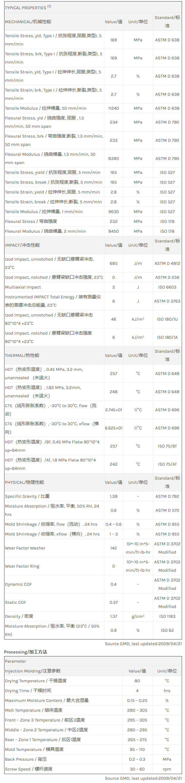 应用范围: 产品描述 LNP Lubricomp RFG16S物性表 “LNP LUBRICOMP RFG16S是一种聚酰胺66(尼龙66)产品,含有的填充物为30%玻璃纤维增强材料,可以通过注射成型进行加工。 特性包括: 耐磨 热稳定剂 润滑” LNP* Lubricomp* RFG16S is a Nylon 6/6 compound containing Graphite Powder