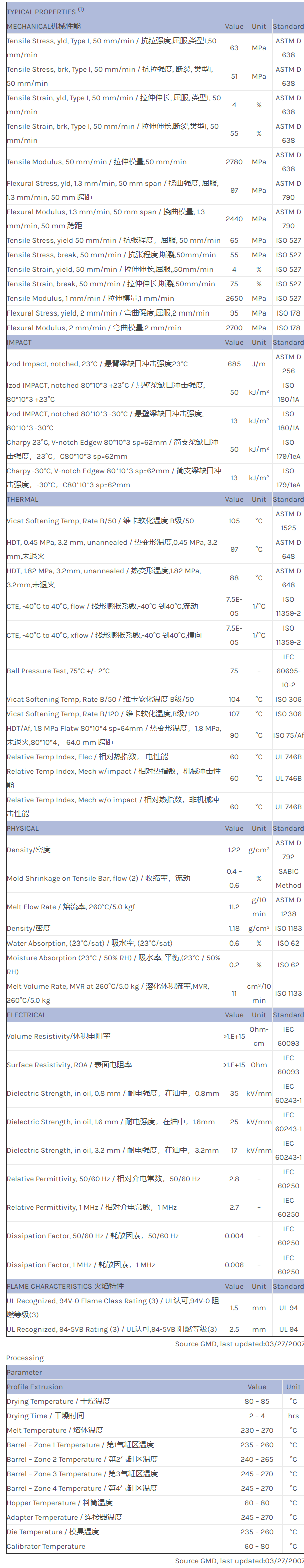 应用范围:产品描述CYCOLOY PC/ABS CE3210物性表Flame retardant PC/ABS blend using non-brominated and non-chlorinated flame retardant systems, offering high IMPACT and excellent extrusion and thermoforming characteristic