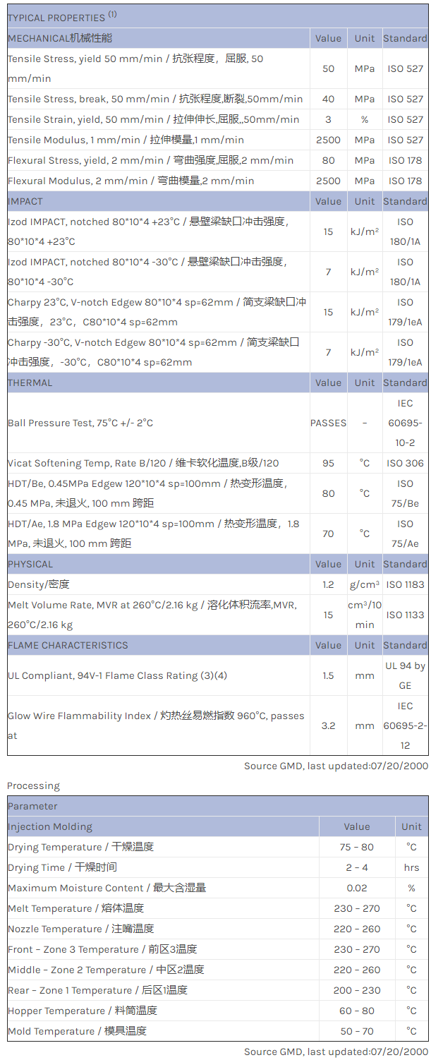 应用范围:产品描述CYCOLOY PC/ABS CY203物性表REMEX CY203 is a PC+ABS flame retardant grade for injection moulding applications. The product is designed to utilize selected recycle materials from our plants, customers a