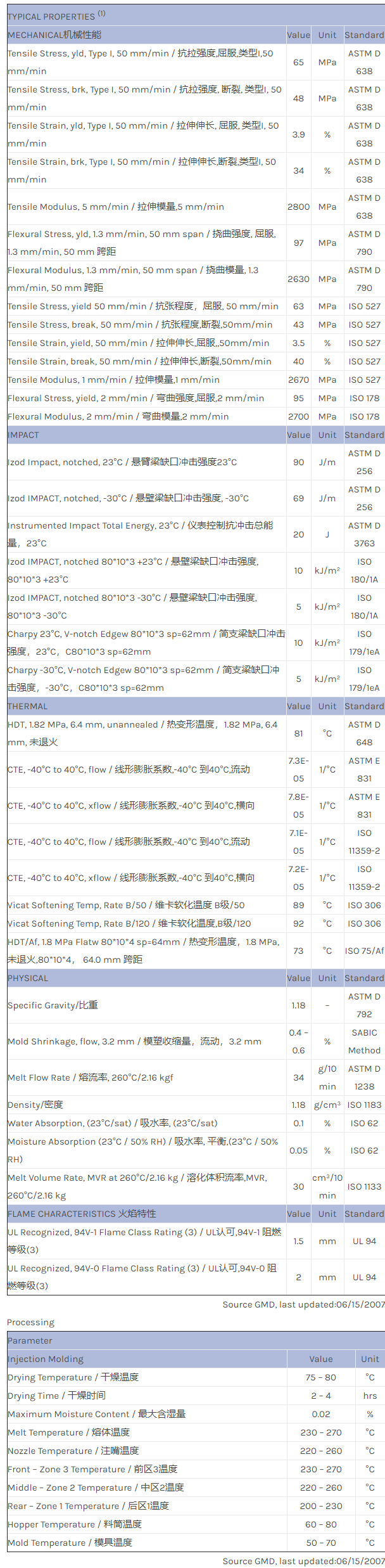 应用范围:产品描述CYCOLOY PC/ABS CY5000物性表Flame retardant PC/ABS blend using non-brominated and non-chlorinated flame retardant systems, offering hydrolytic stability and excellent flow for a wide variety of thin w