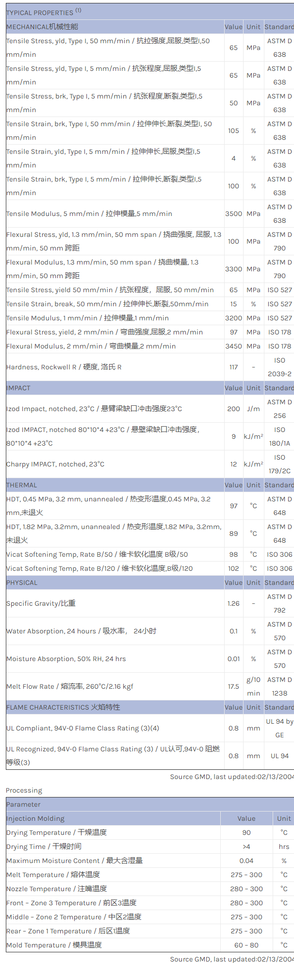 应用范围:产品描述CYCOLOY PC/ABS EXCY0045物性表CYCOLOY of non-brominated & non-chlorinated FR system to meet UL94 V0 at 0.8mm, featuring balanced properties in flow, IMPACT and stiffness