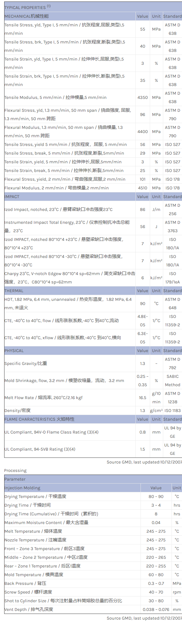 应用范围:产品描述CYCOLOY PC/ABS EXCY0153物性表CYCOLOY EXCY0153 resin is a flame retardant PC/ABS blend featuring balanced properties of high modulus, good flow and ductility. It is of Br- & Cl-free flame retardant sy