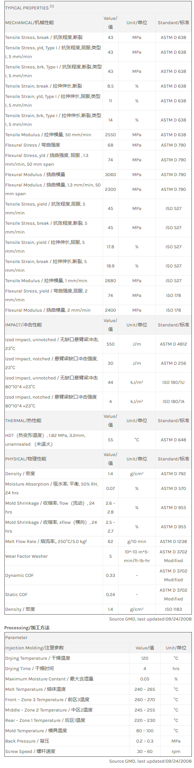 应用范围: 产品描述 LNP Lubricomp WX07423H物性表 “LNP LUBRICOMP WX07423H是一种聚丁烯对苯二甲酸酯(PBT)产品,可以通过注射成型进行加工。 典型应用领域为:医疗/保健。 主要特性为:润滑。” Health care grade, PTFE and silicone lubricated Property/特性