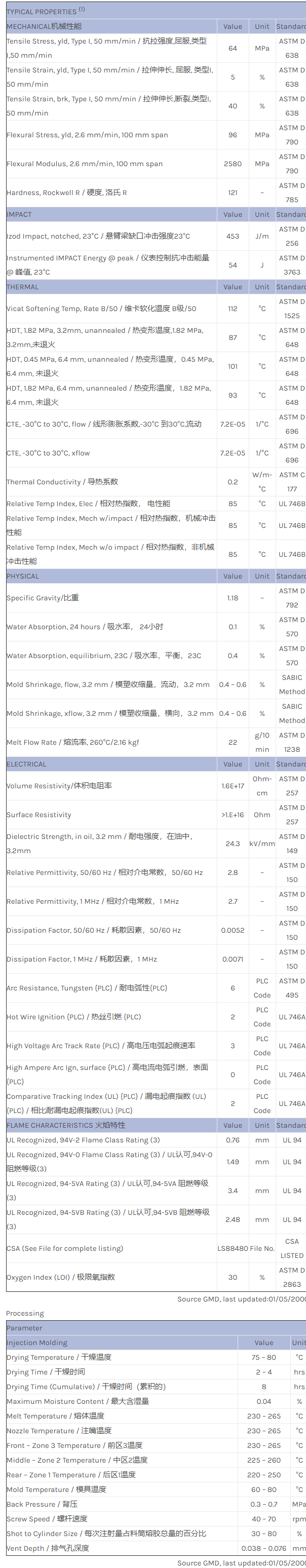 应用范围:产品描述CYCOLOY PC/ABS MC8234物性表PC+ABS, flame retardant without chlorinated or brominated additives. High heat resistance, recommended for thin wall applications.
