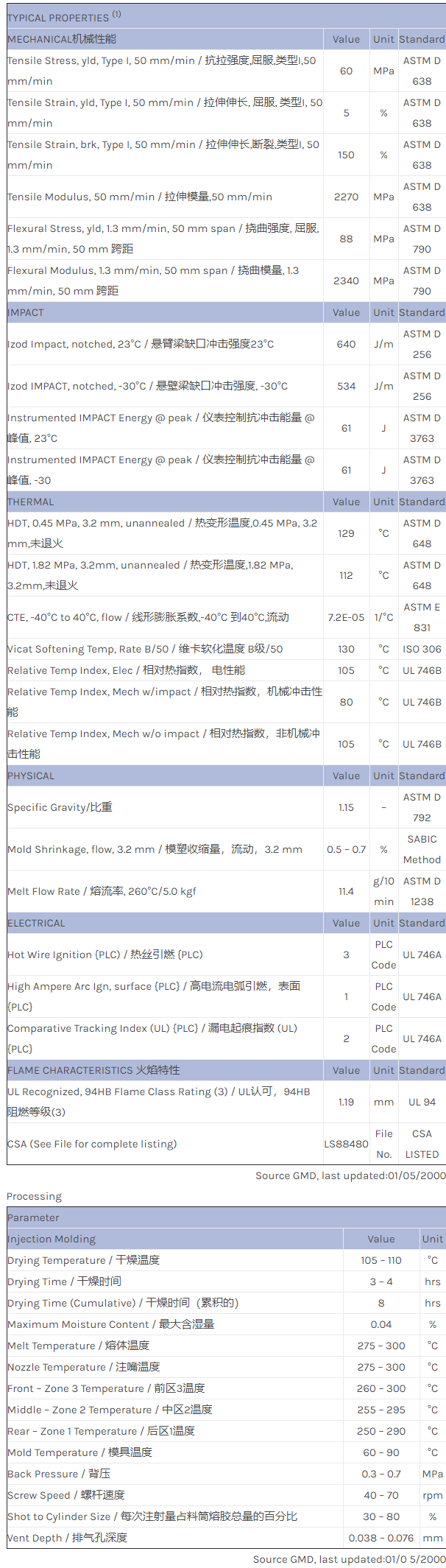 PC/ABS, 优异的抗冲击性、耐高温性。低温延性。适合于汽车、器具和电气元件。