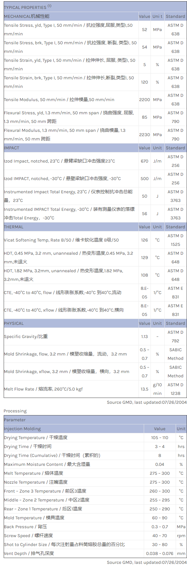 CYCOLOY PC/ABS IP1000物性表