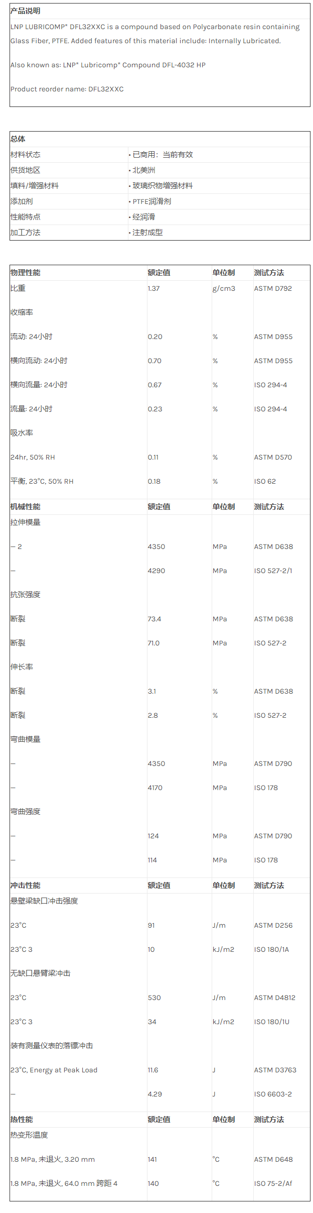 应用范围:产品描述LNP LUBRICOMP DFL32XXC物性表