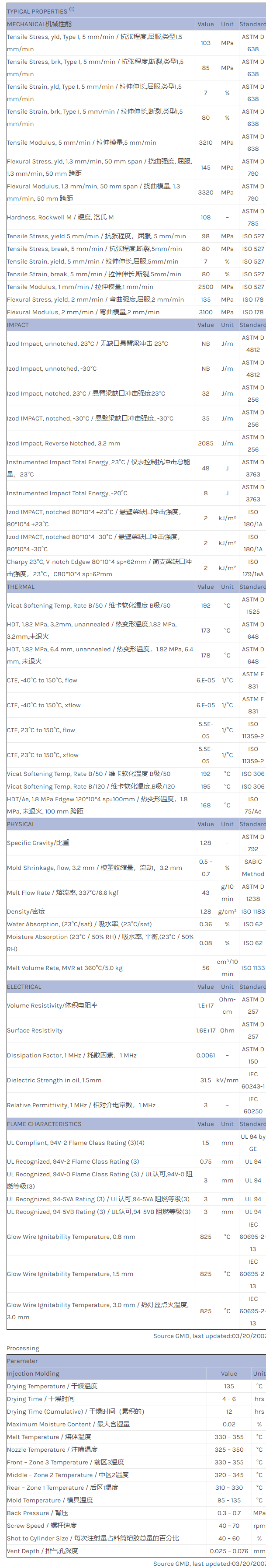 应用范围:产品描述ULTEM PEI EXUM0170物性表Improved ductility, transparent, enhanced flow Polyetherimide blend (Tg 200C) with internal mold release and enhanced ductility. ECO Conforming, UL94 V0 listed.