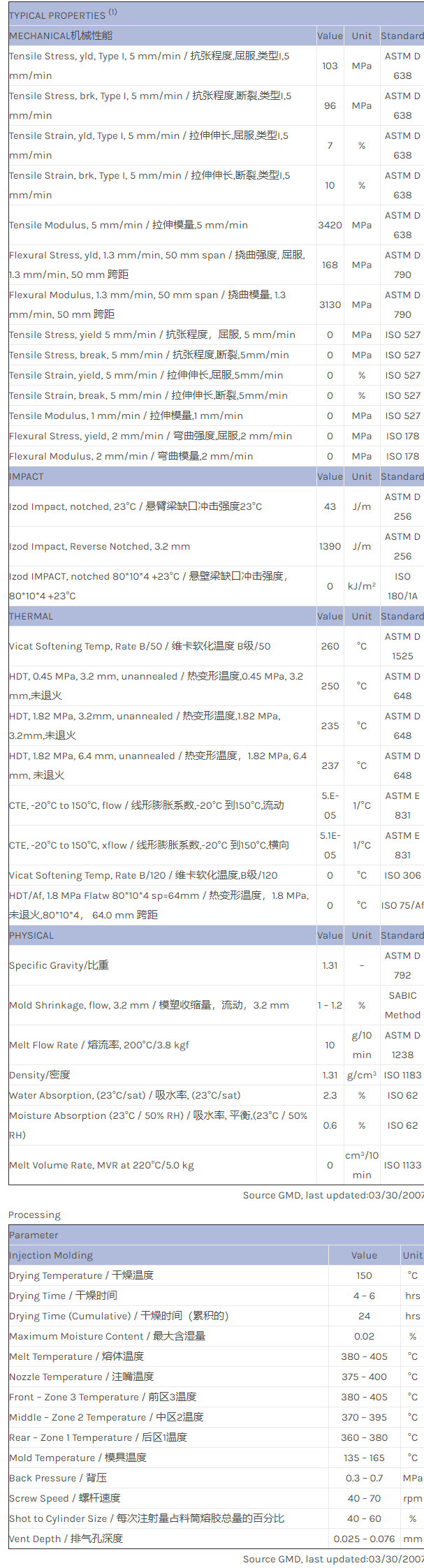 应用范围:产品描述ULTEM PEI EXUM0198物性表Thermoplastic Polyimide Extem* XH1015 Resin.