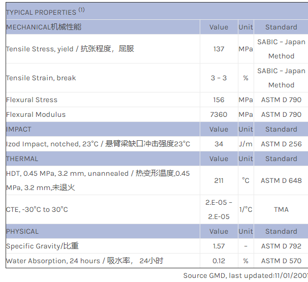 应用范围:产品描述ULTEM PEI JD4912物性表