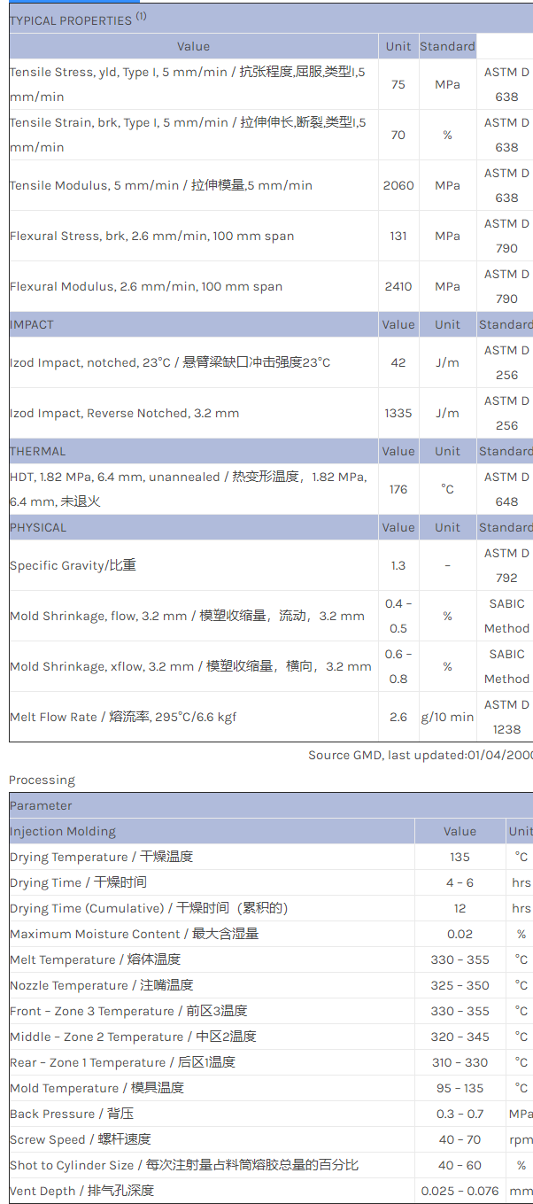 应用范围: 产品描述 ULTEM PEI LTX901A物性表 High flow Polyetherimide blend. Range grey utility grade. Property results given are minimum values. MECHANICAL机械性能