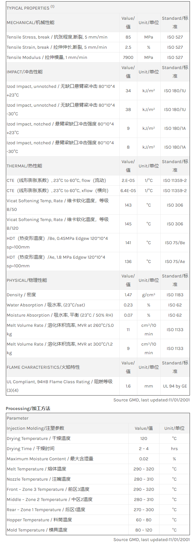 应用范围: 产品描述 LNP Lubricomp Lexan_LF0335物性表 “LNP LUBRICOMP Lexan_LF0335是一种聚碳酸酯(PC)材料,含有的填充物为35%玻璃纤维增强材料,加工方式为:注射成型。 LNP LUBRICOMP Lexan_LF0335的主要特性有:阻燃/额定火焰” LNP* Lubricomp* LEXAN_LF0335 compound is a 35