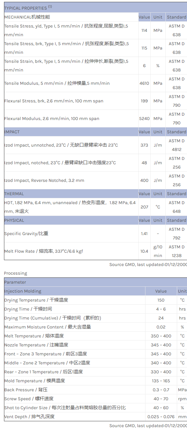 应用范围:产品描述ULTEM PEI 2110N物性表10% 玻纤增强PEI 树脂。