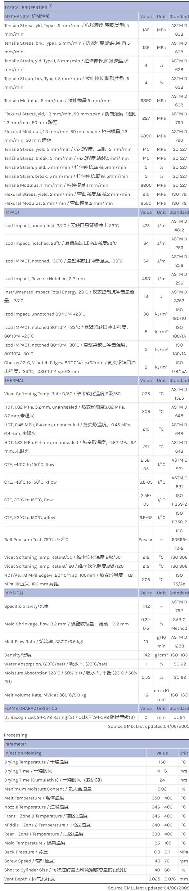应用范围:产品描述ULTEM PEI EXUM0127物性表20% Glass fiber filled, enhanced flow Polyetherimide (Tg 217C). ECO Conforming.