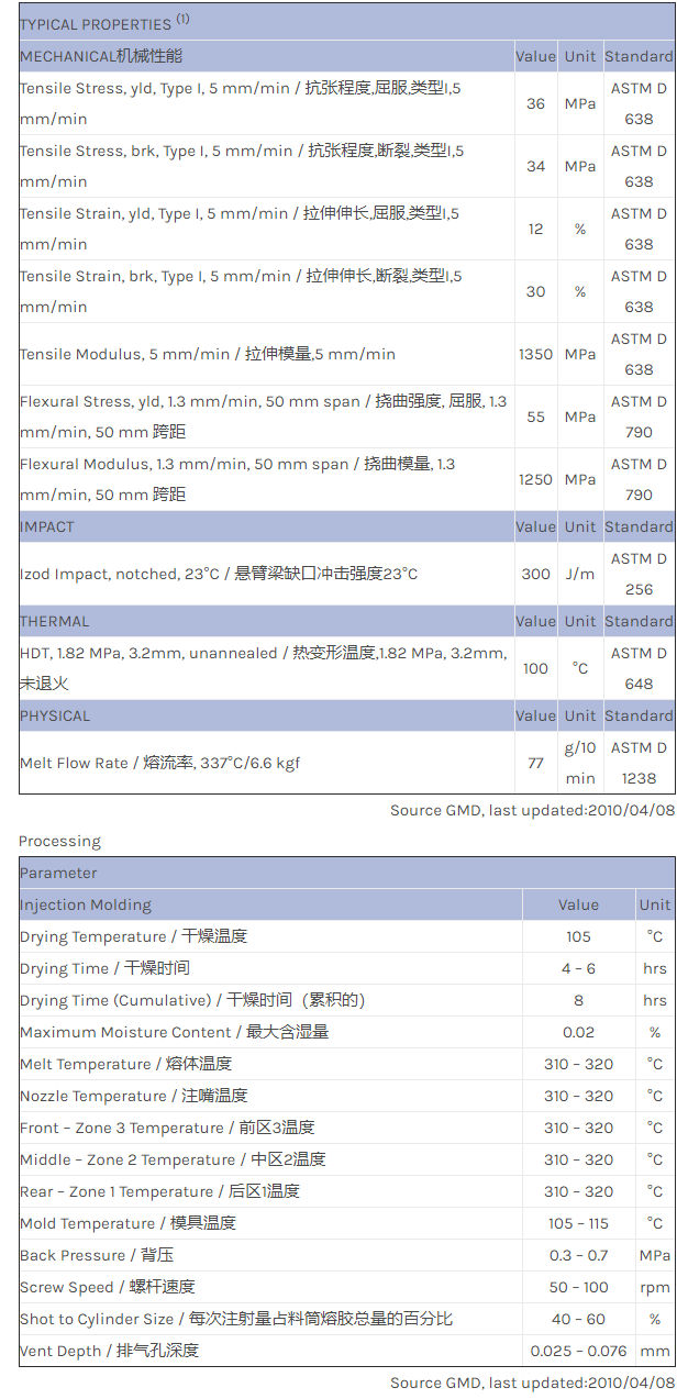 应用范围:产品描述ULTEM PEI EXSM0010物性表FR SILTEM resin with improved flame, smoke & toxicity complying with ASTM E162, ASTM E662 and SMP800C.