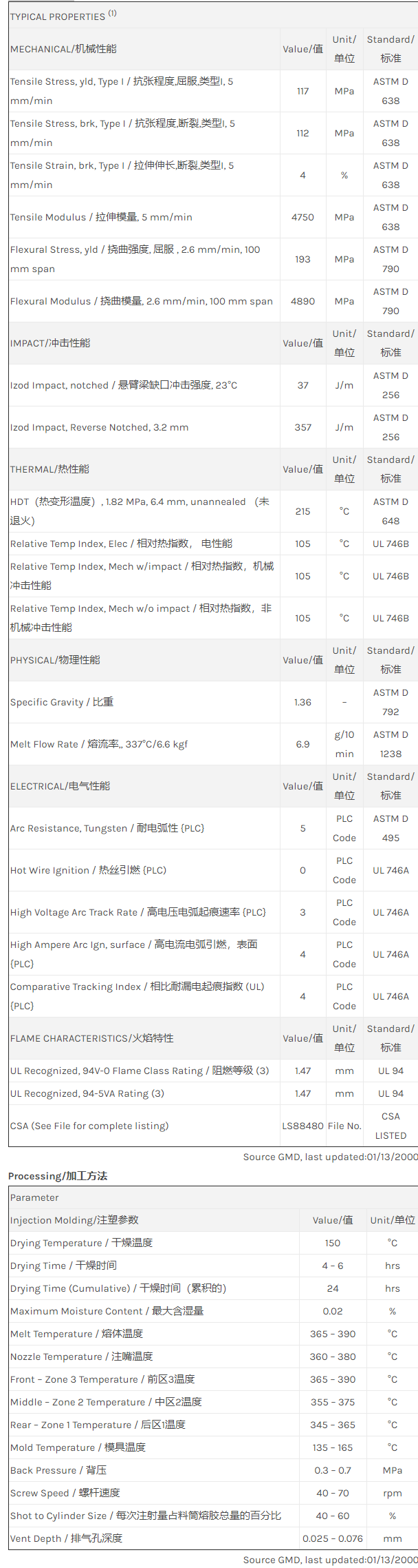 应用范围: 产品描述 ULTEM PEI CRS5111物性表 10% 玻纤增强、低粘度共聚物。改良的耐化学剂性,耐强酸、碱、芳香族环烃、甲酮。 相关颜色色号:CRS5111-7301、CRS5111-GN5D209 10% Glass fiber filled, enhanced flow Polyetherimide copolymer (Tg 225C) with enhanced chem