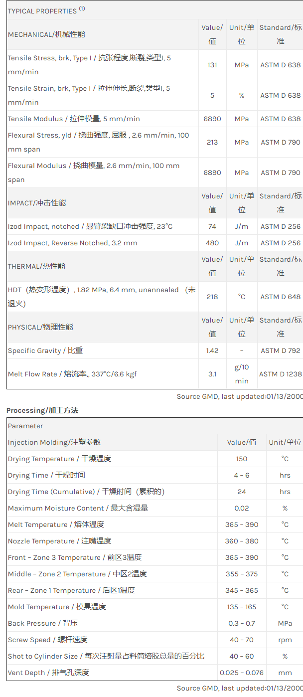 20% 玻纤增强共聚物。改良的耐化学剂性,耐强酸、碱、芳香族环烃、甲酮。内含脱模剂。