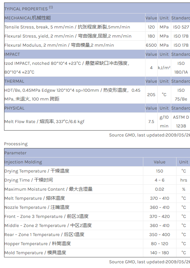 The data listed in this data sheet are the lower specification limits, apart from the MFR which is typical data. The MVR of this material at 337 degrees C/6.7 kgf will have a specification between 3 and 7.5 (MFR: 4.2-10.5)