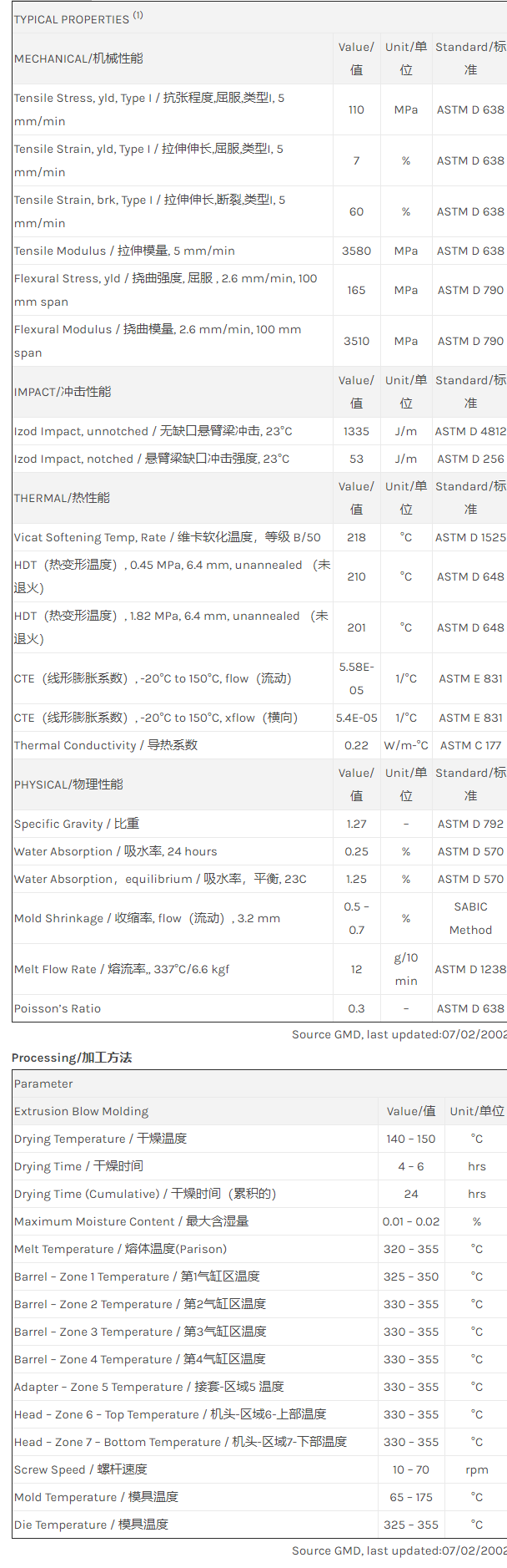 惠州ULTEM PEI 1000E物性表
