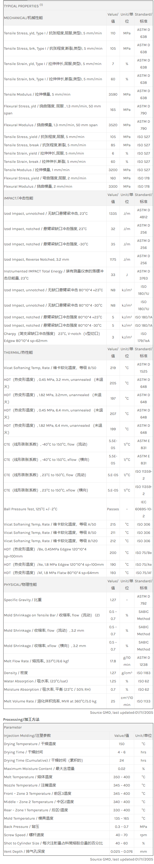 应用范围: 产品描述 ULTEM PEI 1010K物性表 “Ultem 1010K resin是一种聚酯酰亚胺(PEI)产品,它可以通过注射成型进行加工。 特性包括: 高流动性 环保/绿色” Transparent, high flow Polyetherimide (Tg 217C). ECO Conforming. Property/特性
