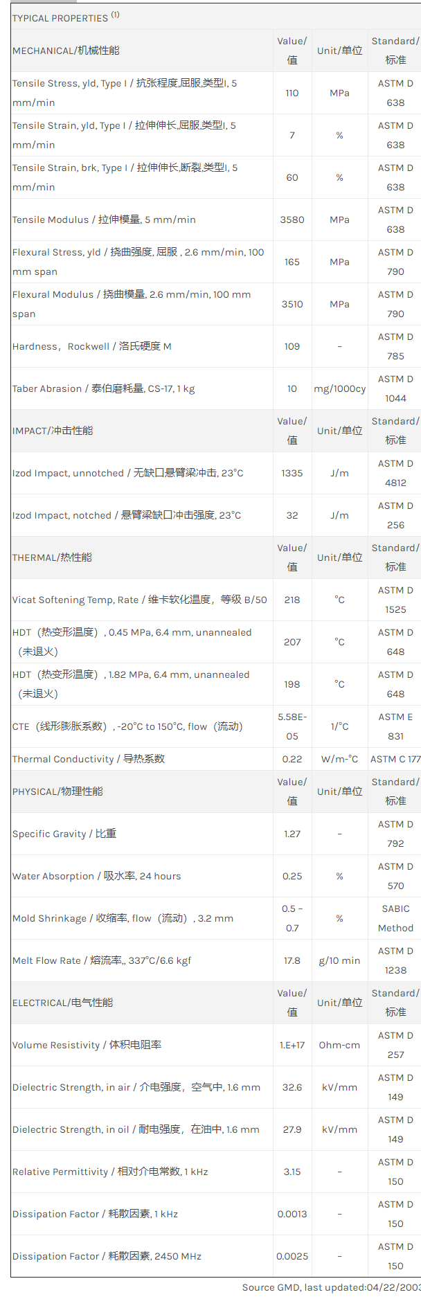 惠州ULTEM PEI 1010X物性表