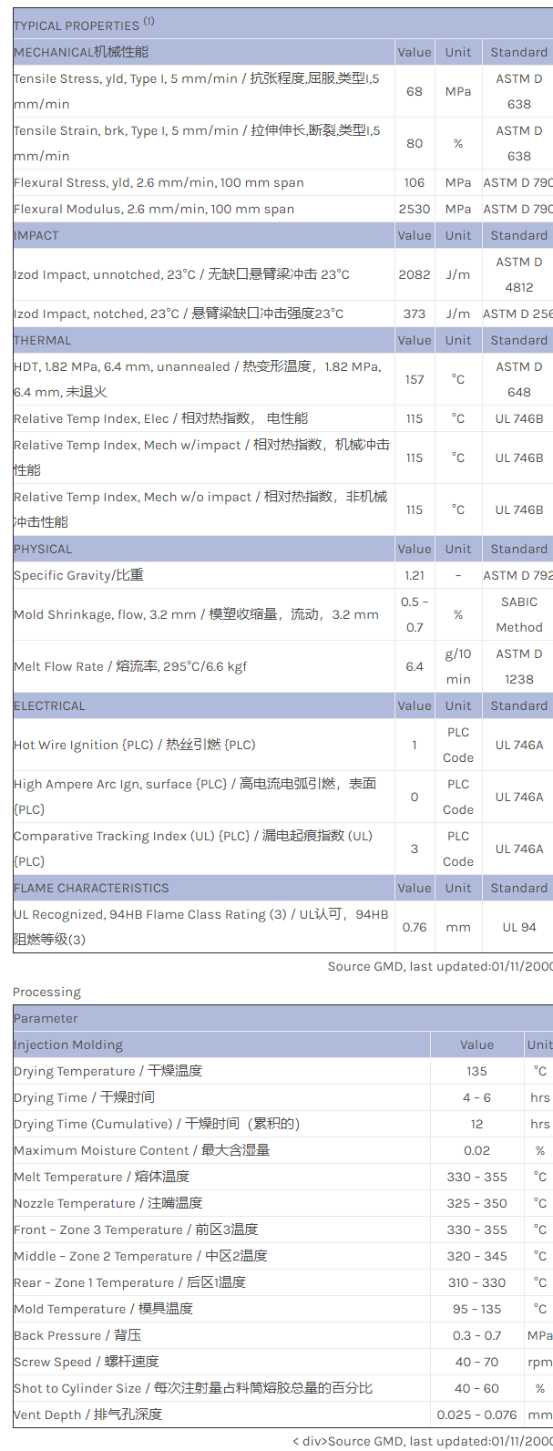 应用范围:产品描述ULTEM PEI ATX100R物性表未增强型 PEI/PCE共混物。高抗冲击性和耐热性,良好的流动性。仅有不透明色。内含脱模剂