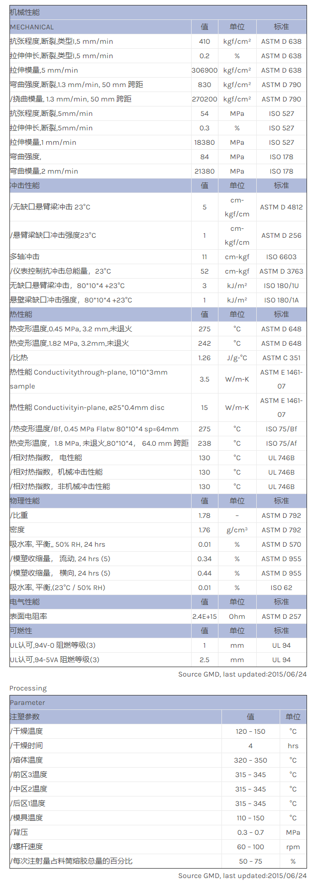 应用范围:产品描述LNP KONDUIT OX11315物性表聚苯硫醚矿物填料,LNP KONDUIT OX11315 is a thermally conductive, electrically insulative, mineral filled PPS Flame Retardant compound.