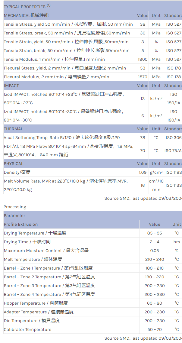 应用范围:产品描述Geloy ASA EXGY0031物性表ASA copolymer. Profile/sheet coextrusion over PVC or ABS. Excellent weatherability, good flow/aesthetics and good IMPACT.