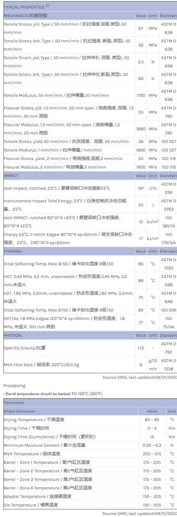 应用范围:产品描述Geloy ASA EXGY003X物性表Will be commercialized as XTWE240 PRELIMINARY DATA. Low gloss ASA primarily for capstock over PVC and ABS