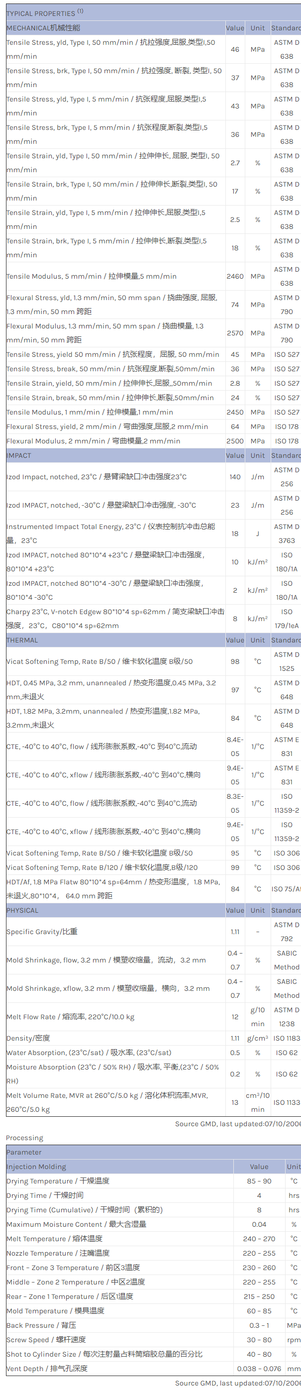 应用范围:产品描述Geloy ASA FXTW26SK物性表Next generation Geloy XTW ASA for high heat exterior applications. Outstanding weatherability and toughness. Metallic sparkle VisualFx.