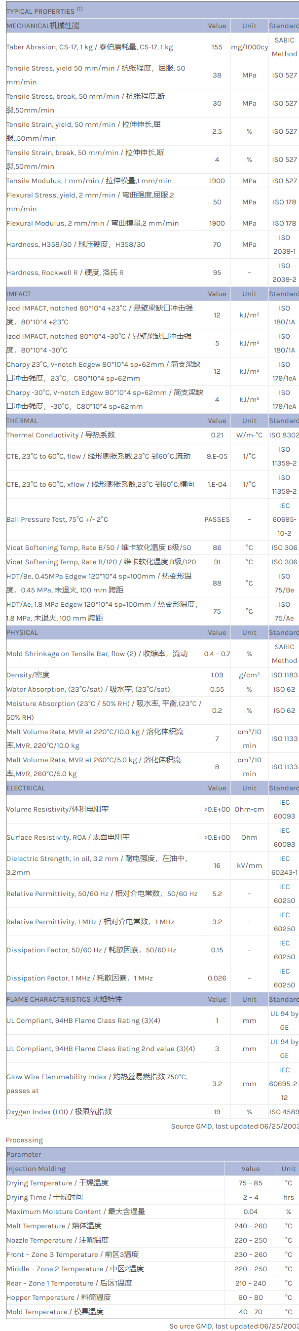 应用范围:产品描述Geloy ASA FXW710AR物性表GELOY FXW710AR is an ASA injection moulding grade. It is suitable for those applications that require metallic colour effects and good weatherability.