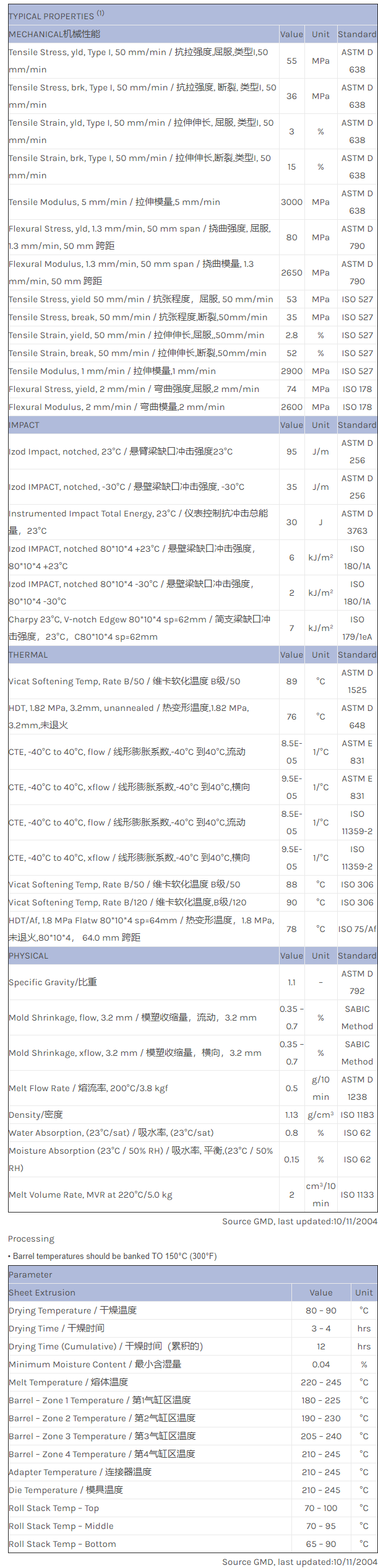 应用范围:产品描述Geloy ASA XTWE290物性表Excellent weathering. Coextrusion capstock grade asa.Thermoformable.Spas and outdoor vehicles.