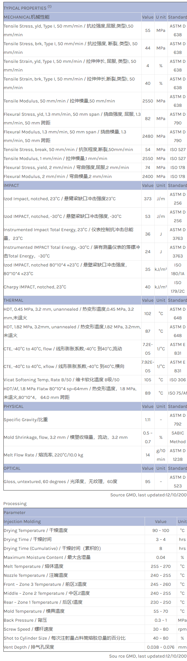 应用范围:产品描述Geloy ASA 29446Q物性表Will be commercialized as XP7550. PRELIMINARY DATA. Injection molding ASA+PC, good exterior weatherability, toughness and outstanding flow for exterior. Available in bright colo